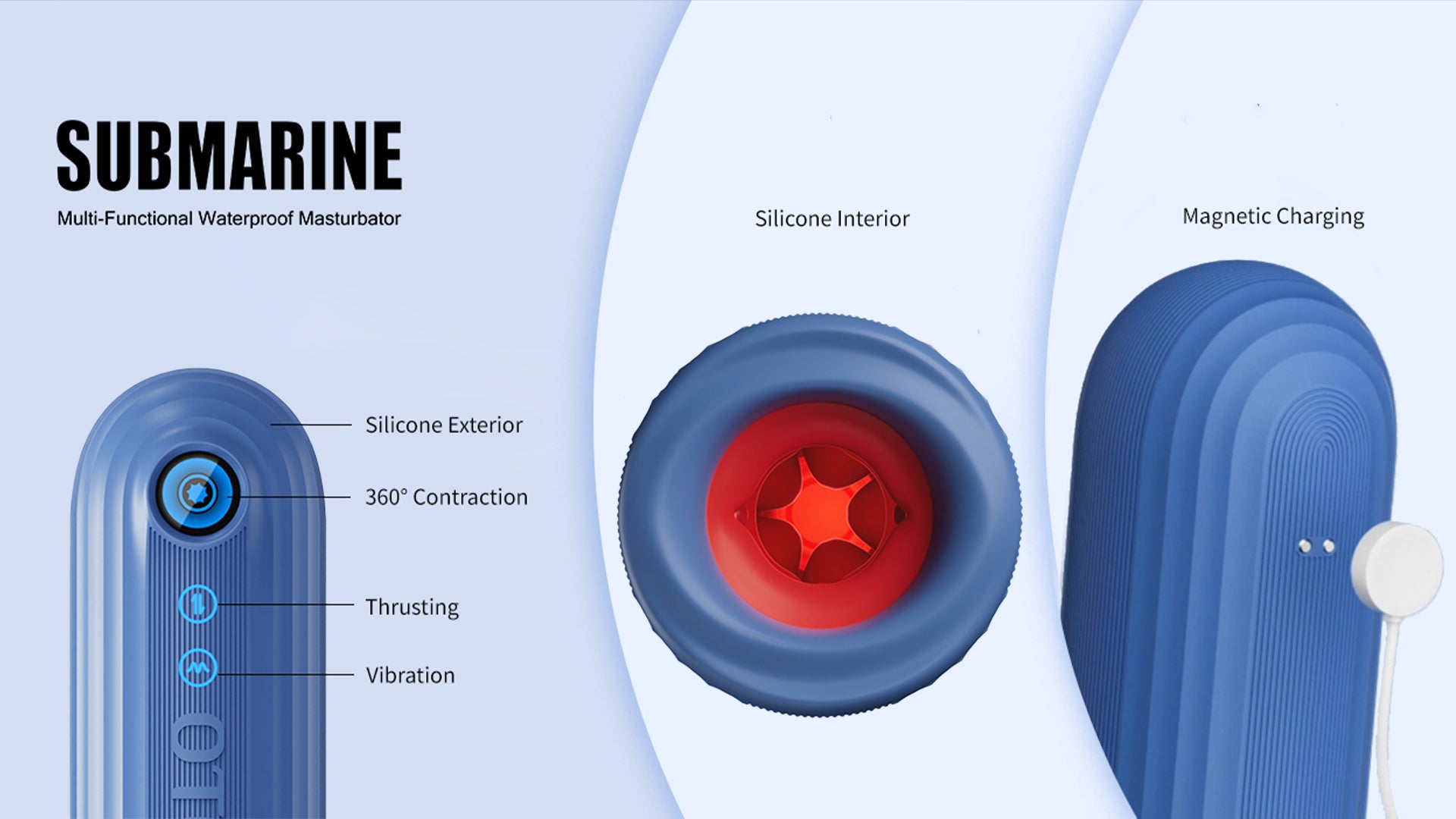 Submarine is a high end male masturbator built for full body stimulation with thrusting, vibration, and 360° contraction working together in one smooth experience. The intelligent thrusting system delivers natural rhythm style strokes that feel steady, controlled, and realistic, while the contraction feature tightens around you for a gripping squeeze that intensifies the sensation. Add the vibration modes on top and every session becomes layered, deeper, and more explosive.